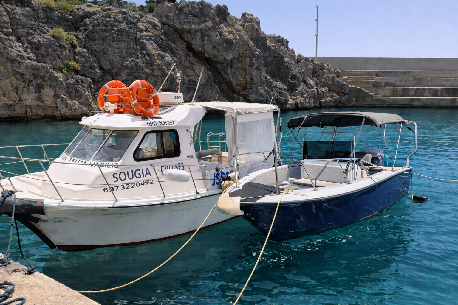 The area’s calm waters and short distances make Sougia ideal for independent boating, whether you are planning a short outing or a full day at sea. Carefully maintained and prepared with safety in mind, each boat offers comfort, stability and peace of mind, so you can relax and enjoy a smooth and independent experience on the water.